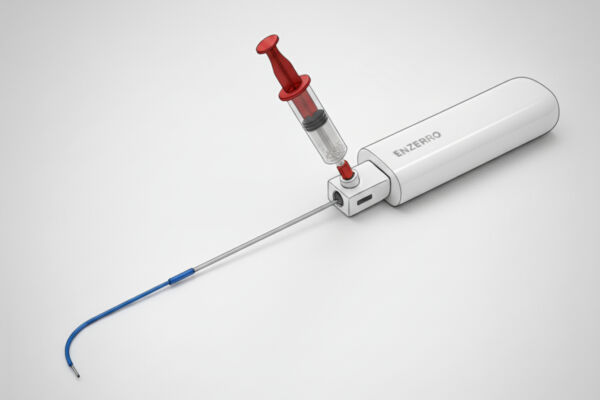 ENZERRO is an advanced microcatheter system that enhances safety in embolization procedures by detecting reflux, the unintended backward flow of embolic particles into surrounding organs. A miniature sensor continuously monitors pressure and flow, triggering real-time alerts or automatic shutoff if dangerous patterns emerge. AI-powered recognition adapts to patient-specific flow profiles, distinguishing risk from routine variation. Seamlessly integrating into existing workflows, ENZERRO not only improves clinical safety but also supports training, with potential applications across interventional radiology