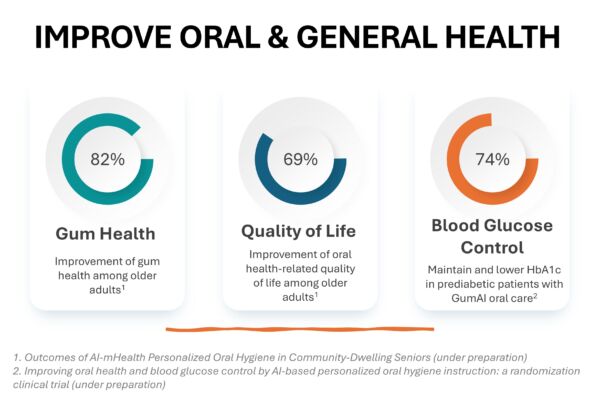 GumAI is an AI-powered system that detects gum disease using smartphone photos of the teeth and gums. Beyond preventing tooth loss, early detection helps reduce the risk of systemic conditions linked to gum disease, including diabetes, cardiovascular disease, and Alzheimer’s. The tool offers site-specific assessments and personalised hygiene advice, supporting remote monitoring from home. Clinically validated and used in community screening, GumAI empowers individuals and contributes to preventive public health on a broader scale