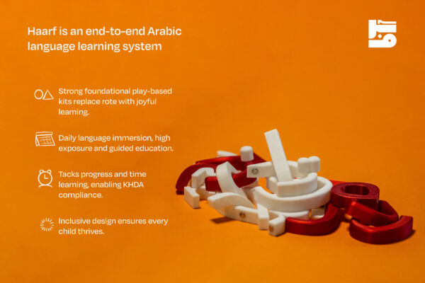 Haarf is an inclusive Arabic literacy system designed for neurodivergent, bilingual, and underserved learners. It simplifies the language’s 100+ letter forms into logical, modular components children can build, hear, type, and talk through. The system includes a magnetic phonics kit, flick-input keyboard, and AI chatbot tutor. By turning everyday interactions into learning moments, Haarf strengthens decoding, confidence, and connection to identity. Pilots show improved reading skills across the UK, France, and UAE, supporting curriculum-aligned early education