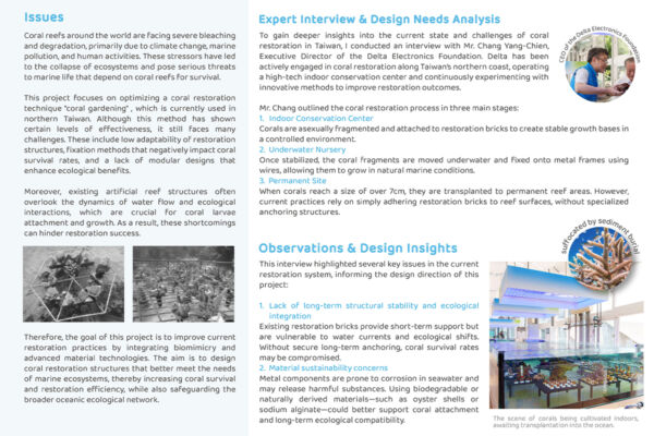 Zhong-Wei Lin is a product and graphic designer from Taiwan, specializing in innovative product design, circular design, visual communication, and service design. He recently graduated from the Royal College of Art, where his research focused on material innovation and sustainable design, aiming to advance coral restoration and support marine ecosystems in Taiwan and worldwide by rethinking coral restoration substrates. His work has been shortlisted for several prestigious European design awards and exhibitions, and has been showcased in Łódź (Poland), Amsterdam (Netherlands), Belgrade (Serbia), Berlin (Germany), Vienna (Austria), and Barcelona (Spain).more