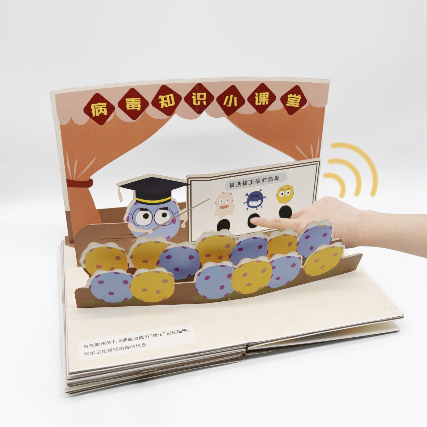 The Superhero in Your Body is a pop-up book with multi-sensory interactions, designed to teach children about COVID-19, how it can be prevented and how they can protect themselves for it. It tells how immune cells fight against viruses and protect our health, through a vivid story about superheroes fighting monsters. The book engages children in an audible, visual, touchable, and interactive way to help them better understand abstract scientific knowledge whilst playing.