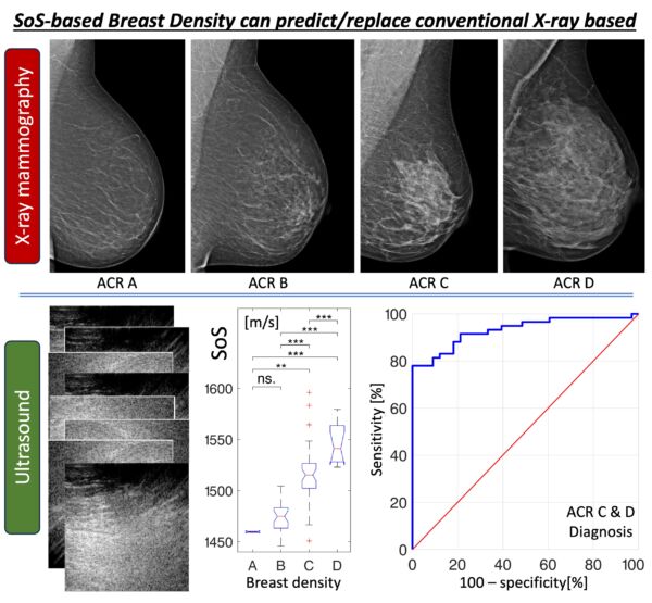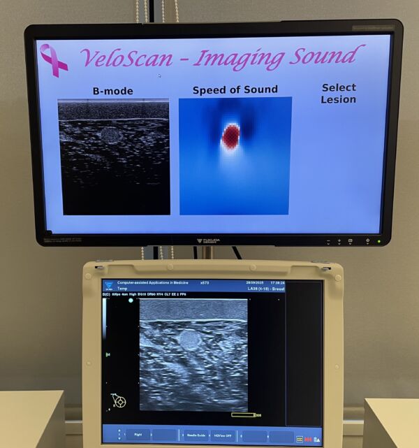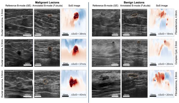 This project advances ultrasound by enabling speed-of-sound (SoS) imaging using standard hand-held devices. SoS is a promising biomarker that reveals tissue composition and disease states, with applications in breast cancer and fatty liver diagnosis. Unlike bulky, double-sided systems, this approach works with existing clinical and portable ultrasound tools, supporting real-time, non-invasive, and accessible diagnosis. Clinical studies show promising results for breast cancer and density assessment, aiming to reduce reliance on costly, ionising, or invasive alternatives