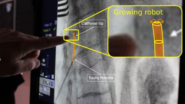 Vine4Spine is a soft, steerable robot that navigates the spinal subarachnoid space for targeted therapeutic delivery. Inspired by climbing plants, it advances via tip-growing eversion rather than pushing, reducing friction and risk to delicate tissue. Less than 2 mm wide, it integrates real-time force sensing and imaging, and fits through a standard Tuohy needle. This platform enables safe, repeatable access to deep CNS targets for gene therapies, biologics, and other emerging treatments